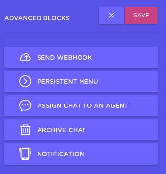 Recuerda que has de tener uno de estos para cada opción que quieras que salga en el menú. En este caso hay otro para el Chatwithahuman.