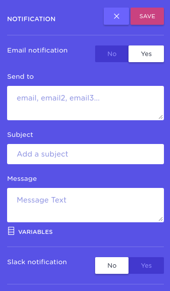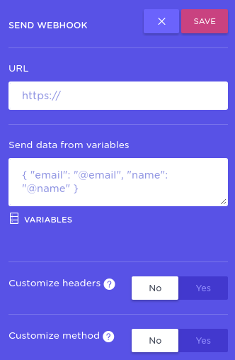Este bloque nos servirá para avisarnos por email (o por slack) de que ha pasado algo. Por ejemplo que se ha generado un nuevo lead. De momento no se puede usar para enviar un mail al lead, eso se tendría que hacer con un webhook, ya que no se pueden usar variables como @email en el send to.