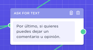 Sirve para pedir datos al usuario. El tipo de datos puede ser bastante variado: un mail, dirección, teléfono, texto abierto o incluso opciones que se representarán con botones dónde hacer click.