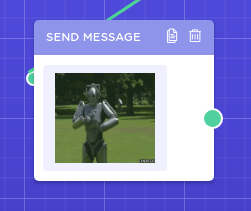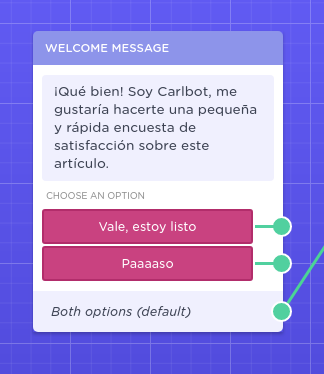 Podéis ver que hay un bloque inicial, el Welcome message. Desde ahí partirá todo. Es un bloque que no se puede eliminar, solo modificar. Si haces click en el mismo bloque te saldrán las opciones.
