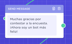 Luego crea otro bloque para el NPS y conecta las respuestas de «Sí, sigamos» que preguntaba si había leído el post con la de «Ya lo he leído» de este último.