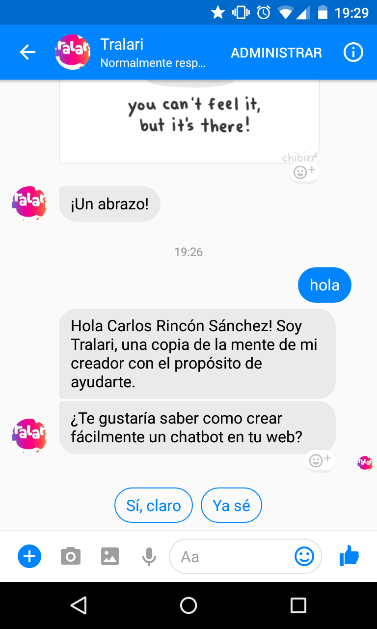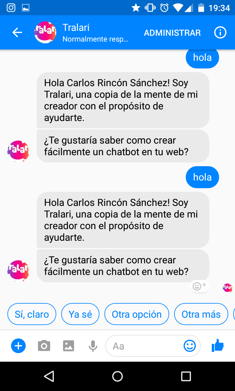 Por ejemplo, si ya conozco al bot no hace falta que se presente de nuevo como si nunca nos hubiésemos conocido.